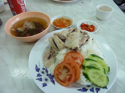 I had the “boiled chicken” which I think is a plain version of Hai Nam chicken. But the chilli, garlic, ginger sauce really does make a difference. The free soup was nice too.