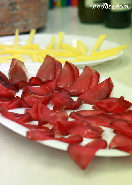 Two highlights, of many, for me was the stunning red bresaola (above), air-dried salted beef, aged for a few months until it becomes hard and a dark red. Sliced thinly they have sensational flavour and stunning colour.