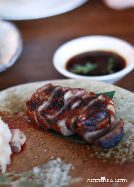 The dark ceramic bowls and plates showcase rather than compete with their content. The food is subtle, meat is marinated with a light touch. This is probably best demonstrated by the duck which is lightly marinated and perfectly cooked, a little crispy on the outside, moist and tender inside. The marinated nashi pear on the side is tasty but subtle.