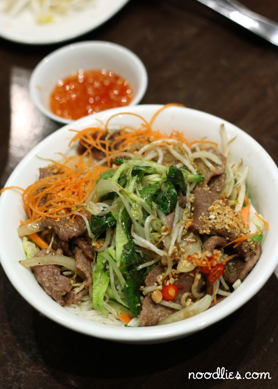 I had bun thit bo xao – vermicelli noodles with fried beef. Again, fairly generous servings with good range of pickles and vegetables.