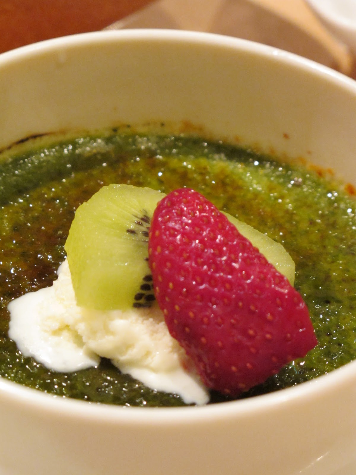 Green Tea Crème Brulee: strong and creamy green tea topped with crunchy burnt top.