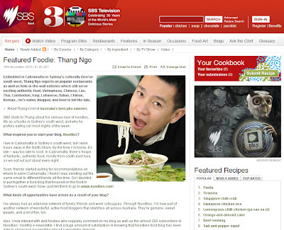 Noodlies – SBS Featured Foodie, November 2010Posted by Thang Ngo | Nov 24, 2010 | 3 | So excited that noodlies was selected as SBS’ featured foodie for November, thanks guys!